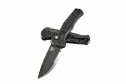 An explosive new design bound to take the battlefield by storm. The 9070SBK Claymore™ with Black Grivory grip is a slender push button powerhouse, packed full of hidden features and inspired by one of the most notorious directional mines. Incorporating a new steel to Benchmade’s portfolio of premium materials, the Claymore™ blade has been crafted from CPM-D2 to provide ample toughness and edge retention. Manufactured in the USA, the Claymore™ has set a new bar for closed break strength making this our toughest folder to date.