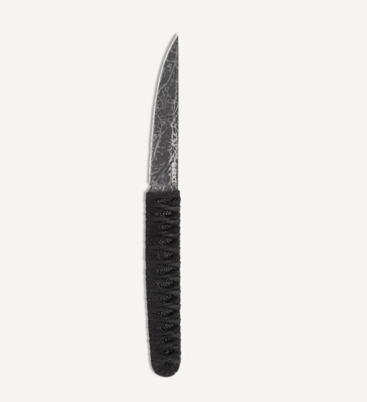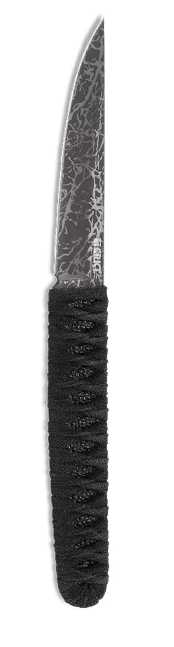 This tactically inspired everyday carry knife with a uniquely etched blade and cord wrapped ray-skin style handle is the true epitome of cool.
