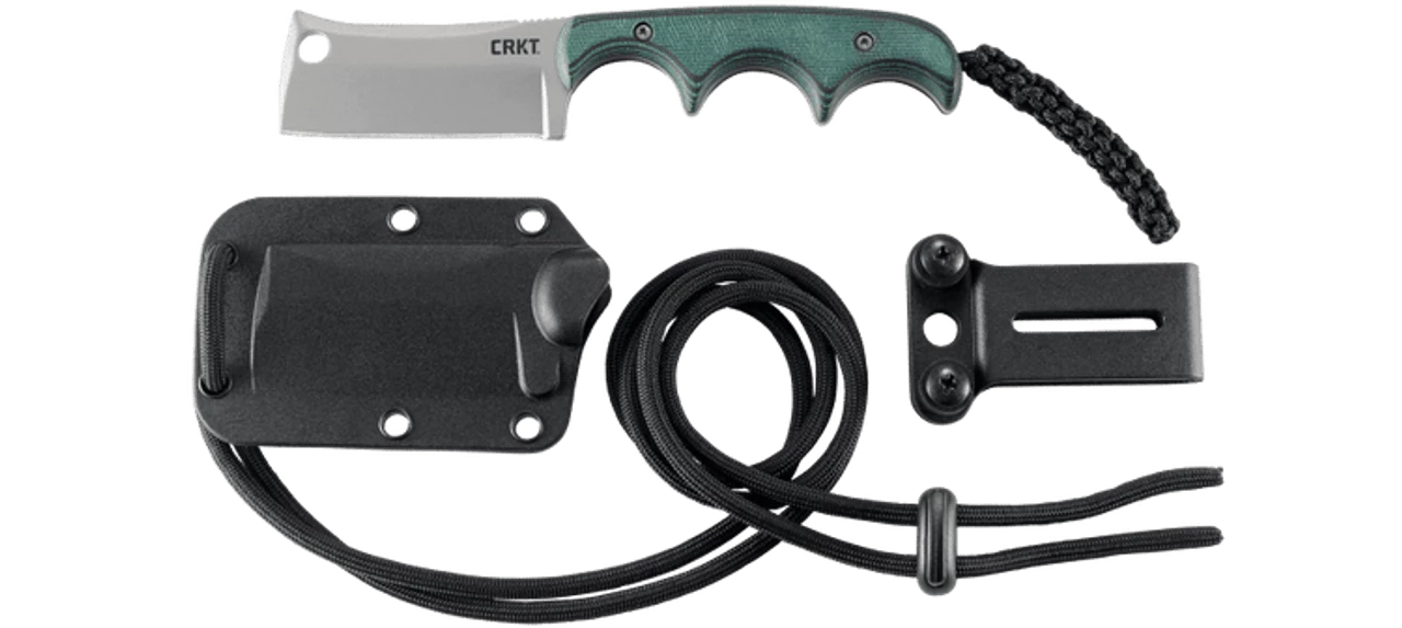 This compact fixed blade neck knife with tough handles has been given a throwback cleaver blade that sparks campfire conversation. Equally at home in the camp kitchen or the garage.