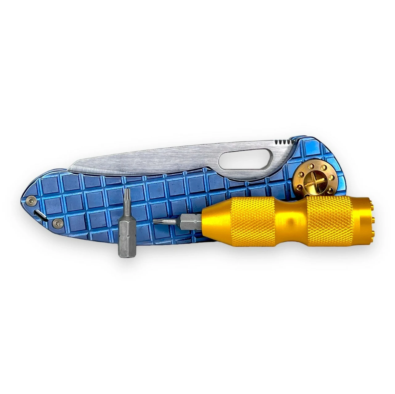 Other John Gray Custom Splitter/ Recurve Tanto/Barked Anodized Ti Scales/Flipper