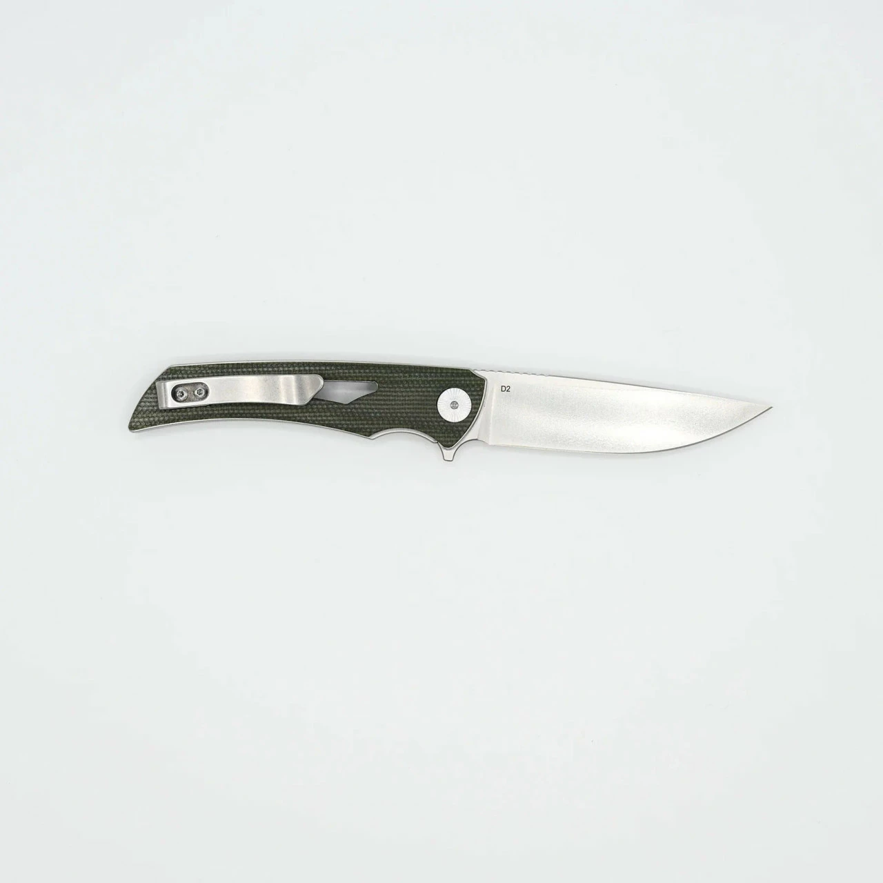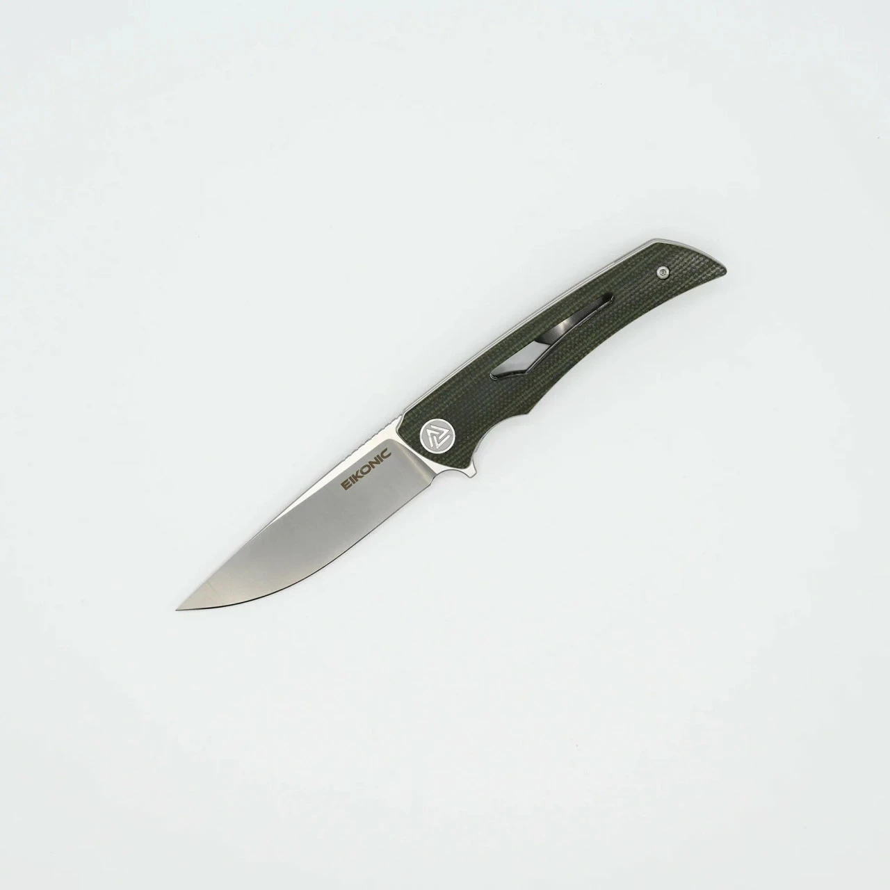 This unique knife has a feature of some of Brian’s most popular custom knives with an “aperture” window in the handle. The overall length and streamlined width make this the perfect everyday carry size. Finished in machined G10 or Micarta this index finger flipper, with ceramic ball bearings, is a contemporary classic that is quick to open and really comfortable to carry. It is perfect for Everyday Carry.