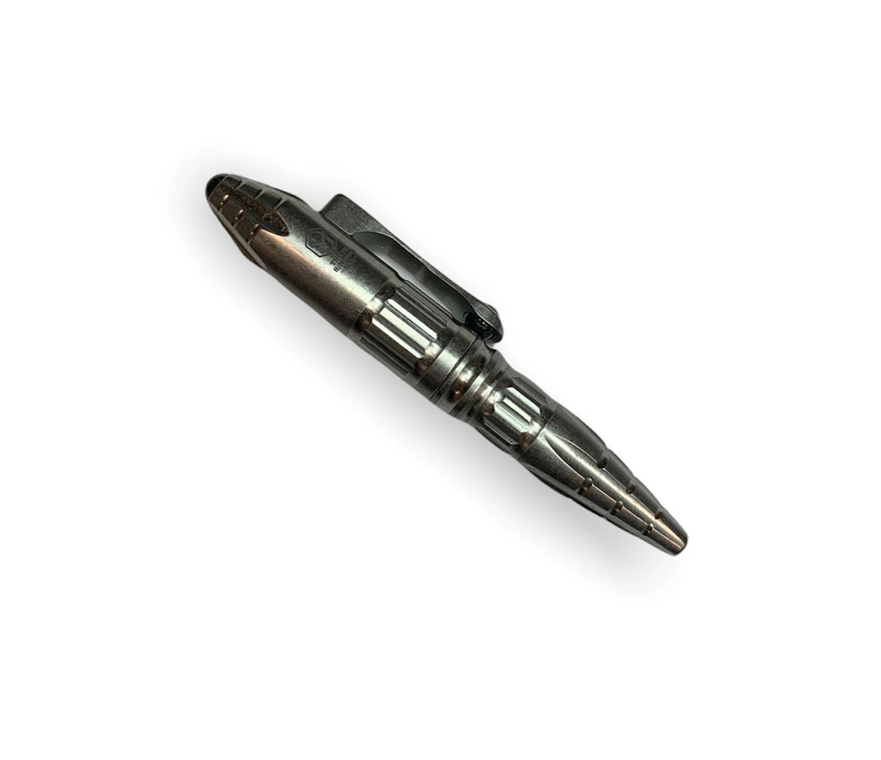 The Thoth from Heretic knives is a modular bolt action pen meaning it can be used at two different lengths. Full size overall length is 5″ and length with the center barrel and ink cartridge extension removed is 3-1/2″.