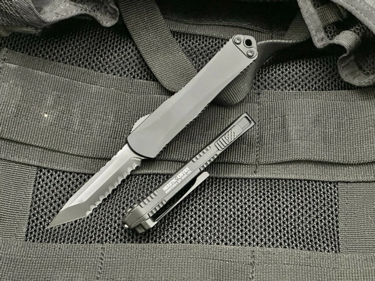Offering the same features of the larger cohorts in the Manticore series, the Manticore S is the smallest in the Manticore lineup. A double action out-the-front, the blade can be deployed and retracted with one hand. The knife’s smooth action starts with a stepped thumb slide so you can fire the blade with confidence. Elegant sweeping lines and jimping down the length of the handle add depth to an otherwise smooth body. A hardened steel glass breaker rounds out the handle.