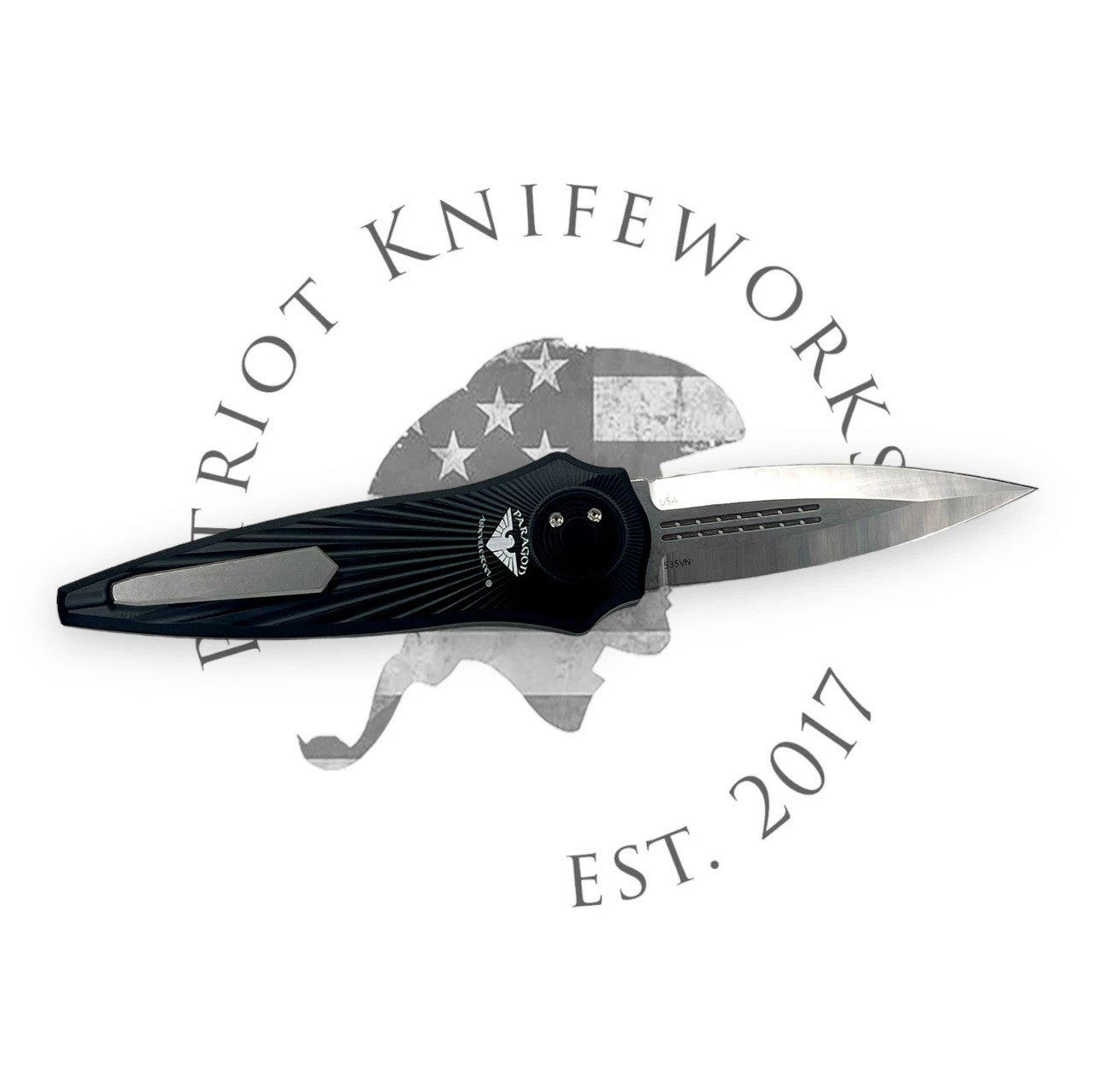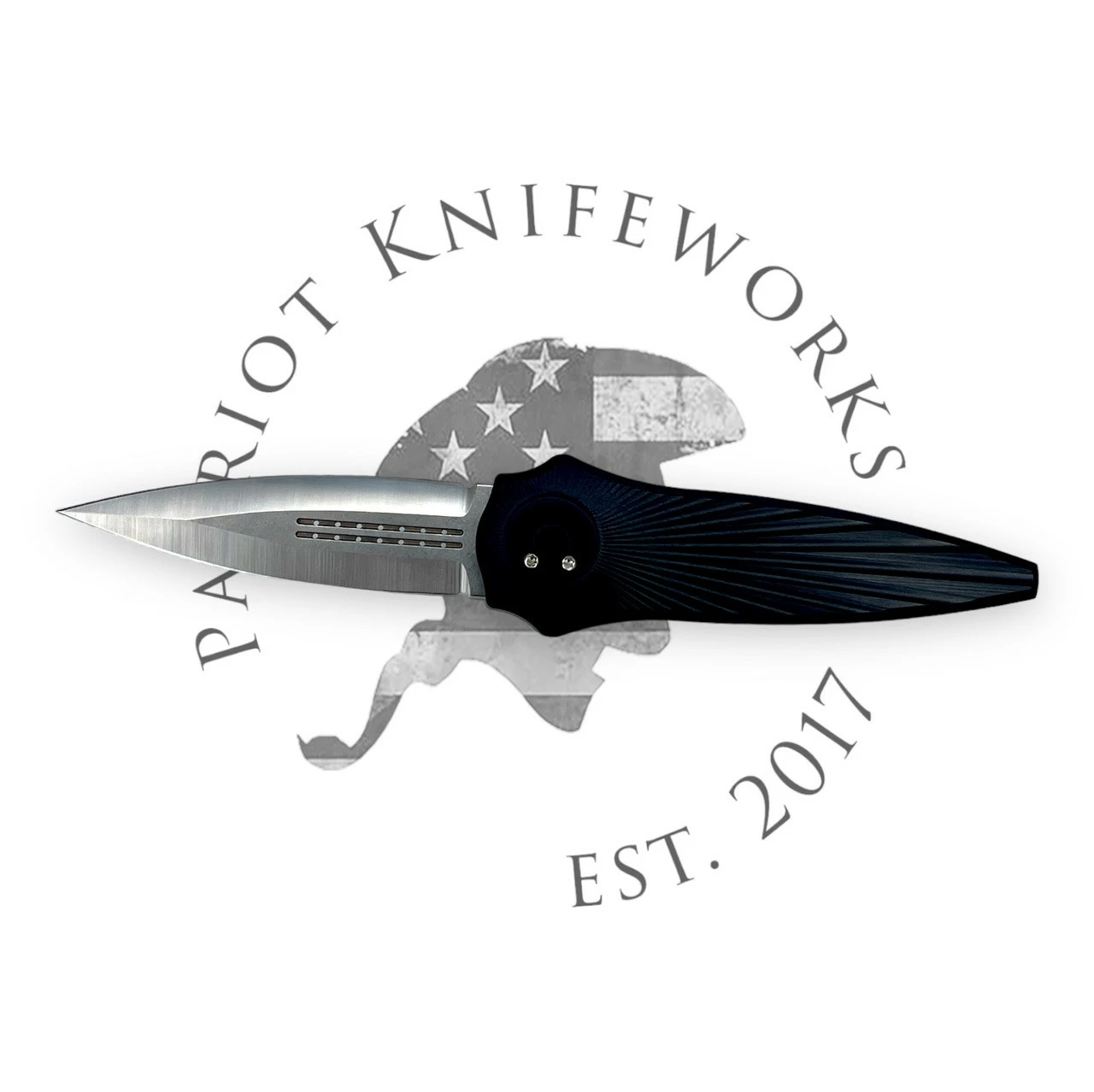 WARLOCK CLAMSHELL GRAVITY KNIFE. FEATURES MILLED ALUMINUM HANDLES. CUSTOM MILLED TITANIUM POCKET CLIP. MANY DIFFERENT BLADE AND HANDLE VARIENT DESIGNS. S35VN BLADE STEEL WITH A 58-60 ROCKWELL HARDNESS.