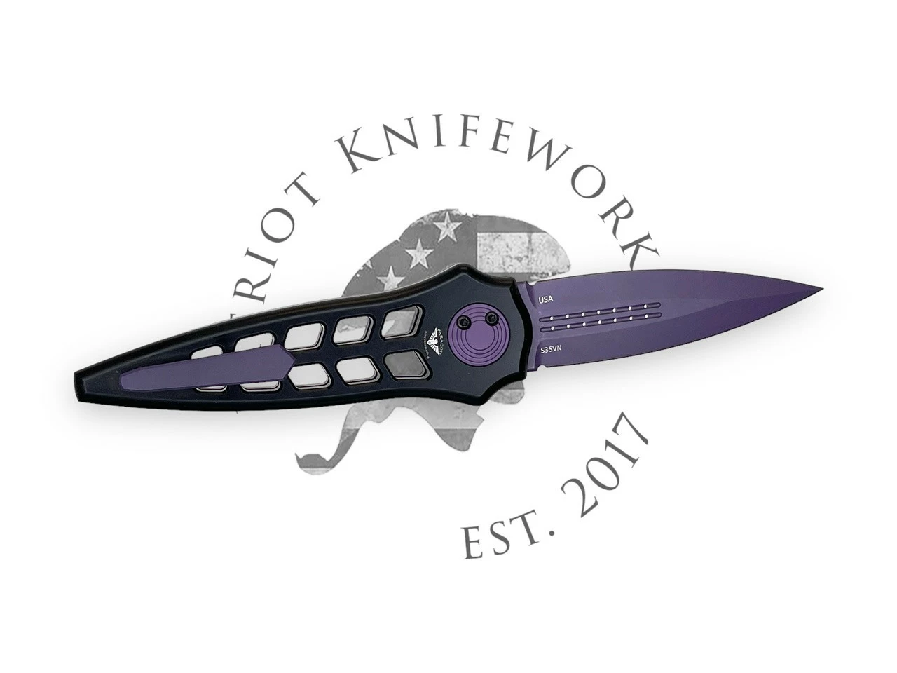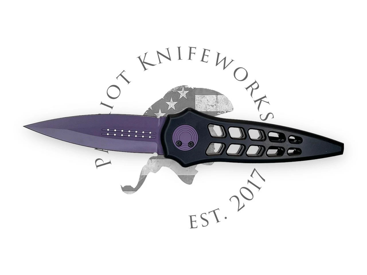 WARLOCX ENCHANTER SERIES FEATURES A SKELETONIZED MILLED ALUMINIUM HANDLE. S35VN DAGGER GRIND BLADE. THE FINISH IS ANODIZED