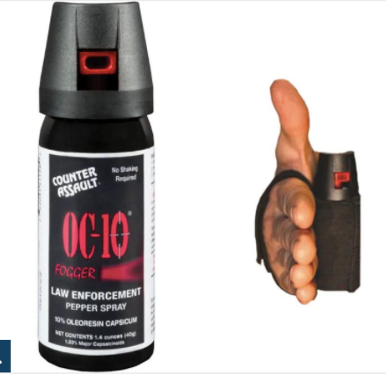 2oz. 10% OC pepper. 8-12 foot cone shaped fog with a continuous spray of 2-3 seconds. Includes jogger style holster and key ring. 5 year shelf life. Clam packed.