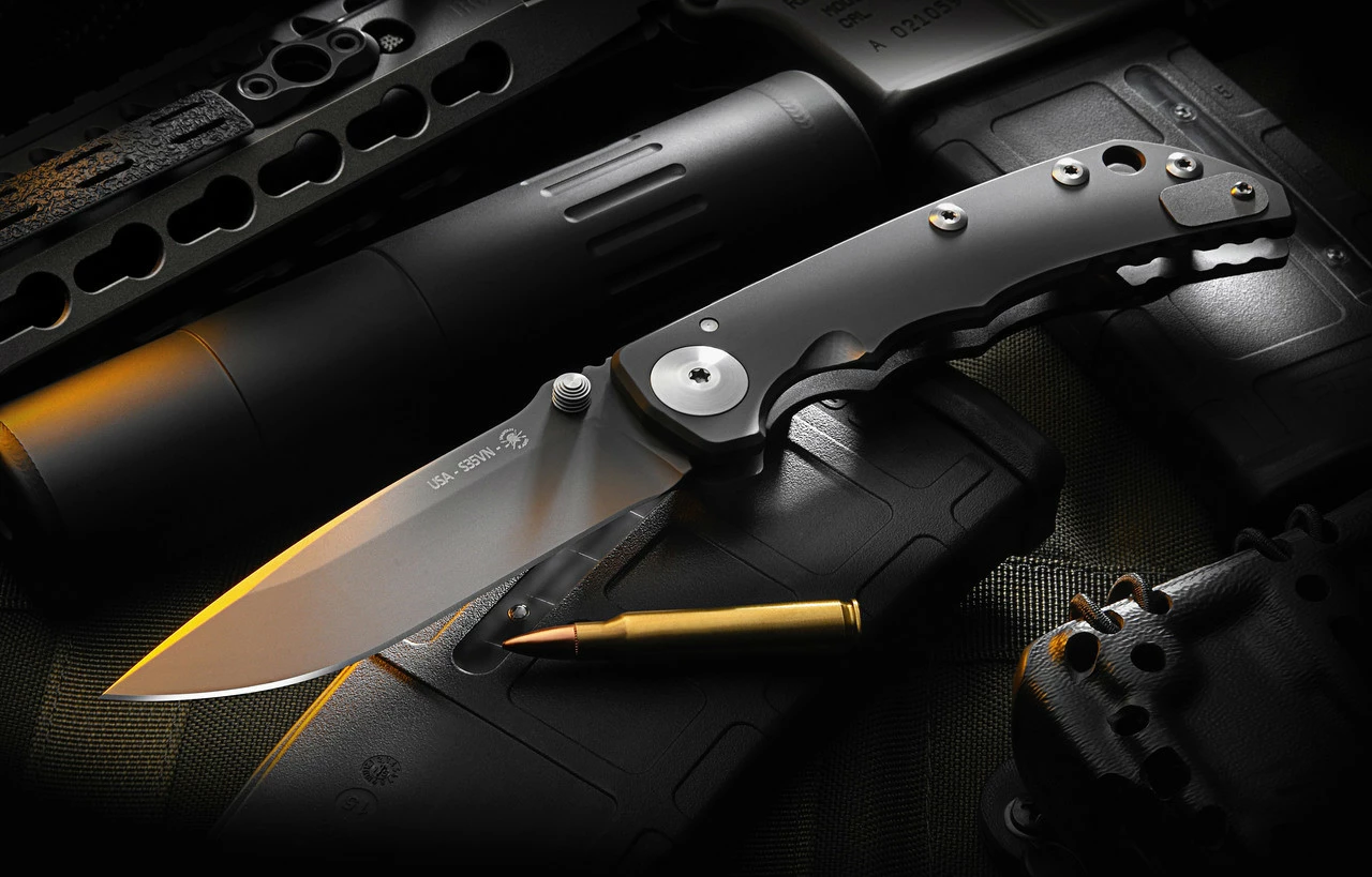 MEDFORD M-48 S45VN PVD BLADE, BLACK HANDLE, PVD SPRING, BRONZE HW/CLIP