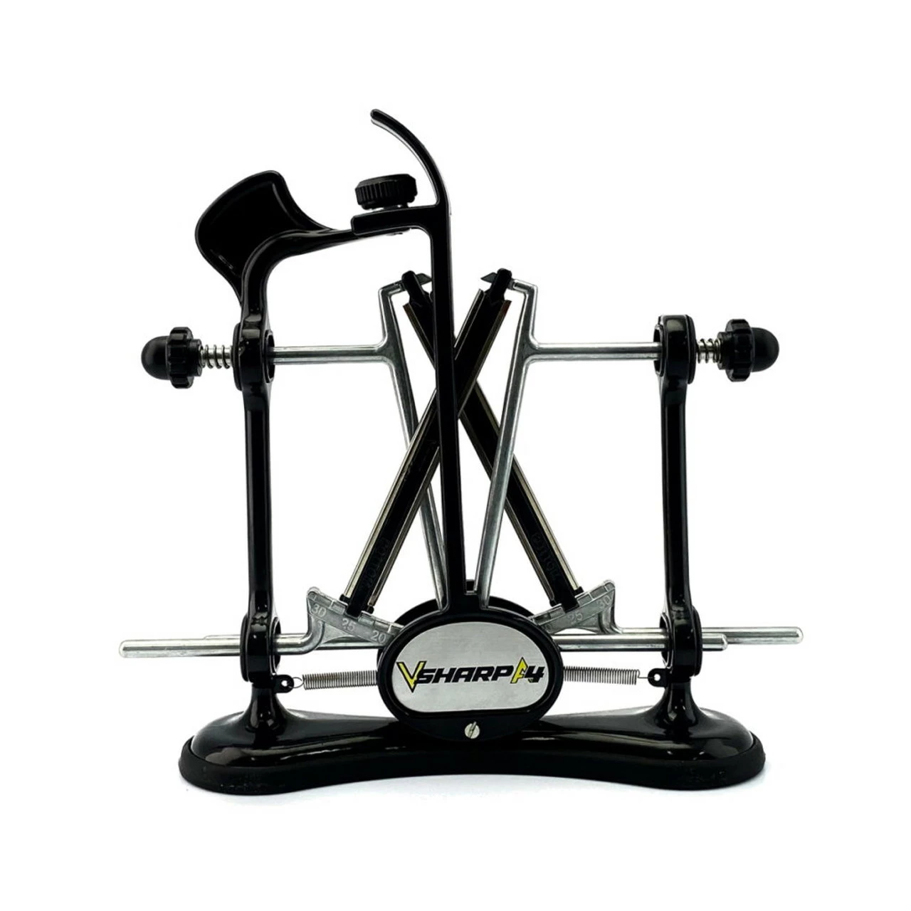 Everyone has experienced the problems caused by using dull knives. The all-new VSharp A4 is your solution. It uses two high quality, 325 grit diamond hones that sharpen both sides of the blade simultaneously. The A4 uses the patented V-Sharp system with angle settings of 15-,20-,25- and 30-degrees to sharpen virtually any knife. It is the perfect diamond knife sharpener for home use, chefs, fishermen, and hunters.  Use with our ceramic hones to sharpen serrated blades with ease! The A4 knife sharpener is easy to use, fast, and accurate. Using Warthog Sharpeners, almost anyone can sharpen a dull knife.